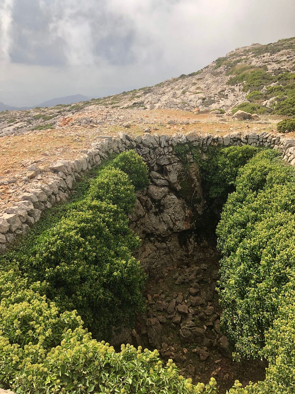 Near the summit a large rectangular cave was carved into the mountainside. Known as a Casa de Neu, or Mallorcan snow house, the deep pits were used to hold snow from the winter through summer months and were vital before the establishment of ice factories.
